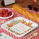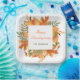 Pretty thanksgiving party paper plate with autumn fall leaves in orange, yellow and green. Perfect for an autumn fall thanksgiving party. The words can be changed to suit your own details or requirements.