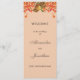 Celebrate your special day with this personalized Fall in Love Wedding program, thoughtfully designed to complement your rustic autumn celebration. Featuring a botanical arrangement of warm orange, brown, and golden yellow leaves intermingled with pine cones, acorns, and luscious ruby red berries, this design captures the heart of the season against a soft orange background. Perfect for a countryside affair or elegant outdoor gathering, this autumn wedding program blends rustic charm with refined beauty. The layout includes modern mocha typography paired with flowing calligraphy script font, creating a graceful and contemporary look that guides your guests through your wedding ceremony with warmth and style. Inside, find all your essential wedding ceremony details and order of service beautifully organized for a smooth and heartfelt celebration. A timeless choice for couples embracing the romance of fall, this Fall in Love Wedding program adds an unforgettable touch of seasonal elegance to your big day.