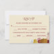 Rustic Autumn floral pumpkin RSVP card. Features a rustic floral arrangement with maroon, pink, rust and yellow flowers, a pumpkin and other botanicals, all against a cream backdrop.