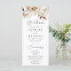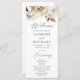 Rustic autumn floral wedding program featuring a top border of watercolor fall flowers and foliage in shades of ivory, cream, brown, and orange. The fall floral bouquet is complimented by a modern calligraphy script. Personalize the front of the autumn boho floral wedding program with your names, wedding date and location, and order of the ceremony. The program reverses to display a list of your wedding party. Designed to coordinate with our Rustic Autumn Floral wedding collection.