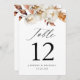 Elegant, fall floral wedding table number cards featuring a top border of watercolor flowers and foliage in shades of ivory, cream, brown, and orange complimented by a modern calligraphy script. To order the table cards: add your name, wedding date, and table number. Add each number to your cart individually and check out when you're finished. Designed to coordinate with our Rustic Autumn Floral wedding collection.