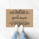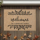 Custom-designed welcome doormat featuring rustic foliage design with personalized family name.