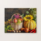 Rustic Autumn Harvest Flowers Pumpkin Jigsaw Puzzle