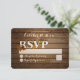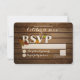 Autumn leaves and rustic barn wood RSVP design response card to compliment our Vintage wood ladder with LOVE letters wedding invitation with fall leaves and dark barn wood background.