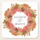 Rustic Autumn Leaves Fall Wreath Wedding Square Paper Coaster