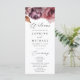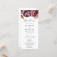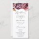 Rustic autumn floral wedding program featuring a top border of watercolor fall flowers and foliage in shades of marsala, burgundy, purple, brown, and orange. The fall floral bouquet is complimented by a modern calligraphy script. Personalize the front of the autumn boho floral wedding program with your names, wedding date and location, and order of the ceremony. The program reverses to display a list of your wedding party. Designed to coordinate with our Rustic Autumn Floral wedding collection.