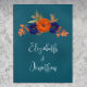 Rustic autumn floral wedding: Navy blue and terracotta burnt orange floral with fall foliage. Features teal blue and modern script typography