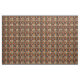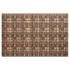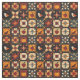 This fabric features a rustic patchwork quilt pattern arranged in a cozy grid of fabric blocks. Each block highlights unique autumnal motifs such as pumpkins, birds, apples, and hearts, alongside intricate geometric patterns including stars, squares, and floral or snowflake-inspired designs. Rendered in warm earthy tones of orange, red, brown, and cream against a deep dark background, the quilt captures the essence of fall and harvest season. With contrasting borders between the blocks, this farmhouse-style folk art design is perfect for Thanksgiving décor, rustic crafts, fabric-inspired DIY projects, and country-style autumn home design.
