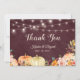 Rustic Autumn Pumpkin Burgundy Floral String Light Thank You Card