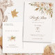 The romance of an Autumn wedding is captured in this elegant design featuring watercolor roses and greenery in warm Fall colors of terracotta, ivory, rust, chestnut, dusty blue and sage green with touches of gold foil sparkles. This design also features unique text graphics in a custom calligraphy script font with color that can be customized using the designer editor.