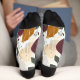 Celebrate the rustic charm of fall with these artistic socks, featuring a delicate mix of leaves and abstract pear motifs in burgundy, mustard, and olive tones on a cream background. Perfect for cozy autumn outfits, these socks combine seasonal elegance with a nature-inspired flair. Ideal for art enthusiasts and lovers of autumn fashion.