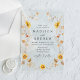 Announce your special day with our Rustic Autumn Sunflowers and Wildflowers acrylic wedding invitation. This beautiful design showcases your wedding details on a transparent acrylic background surrounded by a wreath of hand-painted watercolor sunflowers, wildflowers, and vibrant fall foliage. The rich color palette of yellow, orange, brown, green, and rust evokes the warmth and beauty of late summer and autumn, making it an ideal choice for fall weddings. Perfect for couples seeking a modern floral design with a touch of rustic charm, this acrylic wedding invitation sets the perfect tone for your unforgettable celebration.