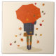 Rustic Autumn Umbrella Girl Ceramic Tile