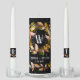 This rustic trinity candle set features an autumn botanical wreath on a black and gray weathered wood background with the bride and groom names and monogram initials along with the wedding date to personalize. Designed by Susan Coffey.