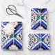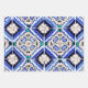 Rustic Azulejo Spanish Pattern Tiles Navy White Wrapping Paper Sheets