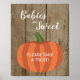 This rustic fall baby shower sign features an adorable pumpkin with the words "Babies are Sweet Please take a treat" on a faux wood background. This is perfect to place on a candy buffet or a sweets table during your autumn baby shower. Matching invitation and party supplies available.