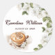 These "Baby is Brewing" rustic coffee-themed baby shower classic round stickers feature a cozy coffee cup at the bottom left and delicate white flowers in shades of beige and brown at the top. The warm, earthy tones and charming design make them a perfect addition to your baby shower decorations, favor bags, or invitations. The rustic aesthetic adds a welcoming and stylish touch, ideal for a coffee-inspired or nature-themed celebration. These stickers bring a sweet and personal detail to your event, adding a unique, memorable flair.