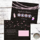 Pink string lights header at top, pink bottle on left and frothy mug of beer on right on dark, rustic wood background. Blue, white and pink bottle cap "Baby" typography. All templates created for you. Reverse side includes pink stars at top.