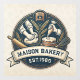 This elegant, vintage-style circular logo for your bakery shop, beautifully captures the artistry of traditional baking. The design is split into two detailed scenes: one side shows hands expertly kneading dough, while the other depicts a hand delicately frosting a cake with a piping bag. Central wheat stalks and a classic wood-fired oven icon anchor the composition, framed by a rolling pin and a whisk. Set against a textured, cream-colored background with subtle pastry patterns, the navy and gold color palette conveys a sense of premium quality and heritage, proudly displaying an "EST. 20xx" establishment date.