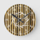 Rustic Bamboo Monogram Vertical Lines Pattern Round Clock