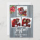 This rustic and festive photo holiday card features a barn board background and three photo frames to add your favorite family photos. The top corner has a spray of greenery with a poinsettia, berries and brass bells. The bottom says "Joyful!" and you can personalize with your name and the year at the bottom. More styles are available in my store at zazzle.com/digiscrapthat