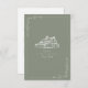 Wedding RSVP with barn illustration with botanical border. Background is Sage Green.