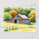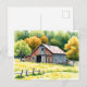 Rustic Barn Watercolor Surrounded by Fields Postcard