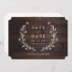 Rustic wildflower floral design on dark brown barn wood background, simple and elegant, great save the date cards for fall backyard country wedding, winter rustic wedding, vintage boho wedding, or outdoor botanical garden wedding.