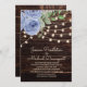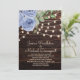 Rustic Barn Wood String Lights Blue Floral Wedding Invitation