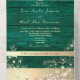 Celebrate your love with an exquisite blend of modern elegance and vintage country bohemian flair. Our rose gold and barn wood emerald green all-in-one wedding invitation features intricate gilded gold floral lace, complete with RSVP details and a personalized wedding website link. Your monogram graces the top, adding a touch of bespoke charm. Each invitation is hand-addressed on the back, ensuring a truly personal touch for your special day.