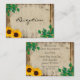 Reception Cards. Rustic Barn Wood Sunflower Wedding. A popular country wedding theme featuring barn wood, yellow sunflowers, vine leaves and knotted rope design. ⭐This Product is 100% Customizable. Graphics and text can be deleted, moved, resized, changed around, rotated, etc... 99% of my designs in my store are done in layers. This makes it easy for you to resize and move the graphics and text around so that it will fit each product perfectly. ⭐ (Please be sure to resize or move graphics if needed before ordering) You can also "TRANSFER DESIGN" on other Zazzle products and adjust the design to fit most of Zazzle items. (button is down on the right side of the page) Some of the text graphics have ready to fill in the box(es) or you can Click on the "CUSTOMIZE" button to add, move, delete, resize, background color or change any of the font or graphics. The design is made with high resolution vector and/or digital graphics for a professional print. ⭐NOTE: (THIS IS A PRINT. All zazzle product designs are "prints" unless otherwise stated under "About This Product" area) The design will be printed EXACTLY like you see it on the screen and on the product...so please make sure when you do your changes on the resizing of any of the graphics or text that it fits in the areas correctly and that your spelling and wording is how you like it to be in size, color and font. If you have any questions about the "DESIGN" or need help or another color, please contact me at siggyscott@comcast.net or visit my store link: http://www.zazzle.com/magical_weddings?rf=238713599140281212 (Copy and Paste) I'll be happy to help. ⭐ All other questions (shipping, refund, the printing, the product, etc...) please contact Zazzle or the Maker ⭐DIRECTLY⭐. Thank you for the support and stopping by my store -Magical_Weddings © Donna Siegrist
