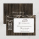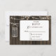 Rustic Barnwood, dangling string lights mason jar wedding RSVP. Matching products also available.