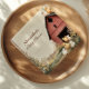A sweet rustic farmyard design featuring a classic red barn, fluffy ducklings, pastel balloons, and spring blossoms. Perfect for celebrating an upcoming little one with a cozy countryside theme.