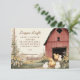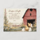 A sweet rustic farmyard design featuring a classic red barn, fluffy ducklings, pastel balloons, and spring blossoms. Perfect for celebrating an upcoming little one with a cozy countryside theme.