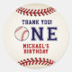 Rustic Baseball thank you stickers. Put me in coach! This napkin is created with a vintage background texture, baseball stitch accents with "One" in the center, the "O" is replaced with a baseball. Additional party supplies are available at Metro-Events Zazzle shop and Metro-Event.com.