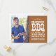 Cool rustic graduation barbecue party invitation with distressed vintage typography. Use the design tools to choose any background color to coordinate with your school colors or party theme. Add your senior photo and graduation party details on the front with a second photo, your name, class year and school name or other text on the back side. Use the design tools to add more photos and text, edit fonts and colors to create a unique graduation announcement and party invitation.