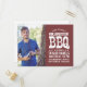Cool rustic graduation barbecue party invitation with distressed vintage typography. Use the design tools to choose any background color to coordinate with your school colors or party theme. Add your senior photo and graduation party details on the front with a second photo, your name, class year and school name or other text on the back side. Use the design tools to add more photos and text, edit fonts and colors to create a unique graduation announcement and party invitation.