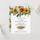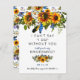 Featuring a classic white background that can be changed to any color, a rustic blue & sunflower floral display, feathers, and the sweet wedding wording "I can't say "I do" without you".