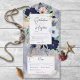 AVAILABLE WITH OR WITHOUT A QR CODE TO SCAN OR WITH OR WITHOUT DINNER SELECTION OPTIONS. This design features a wreath of tan, navy, peach blush, tan, and white florals on a navy blue watercolor splash background. It also features nautical elements like rope, starfish and an anchor. Perfect for the destination, beach, or water side wedding. Add a QR code to your invitation so that gusts can quickly access your wedding Website for details, directions, menu options, and more, or add your gift registry Web URL. Personalized All-In-One invitations are a unique combination of both a beautifully printed custom invitation with an easy to tear off perforated RSVP postcard. And they are so easy to use! You simply fold, then seal the back flap with the three included clear stickers, and mail. And when your guests receive your custom invite, they just tear the perforated RSVP Card off and drop it back in the mail to you!
