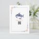 Wedding RSVP with rustic fish illustration with botanical seashell border. Color scheme is red and blue. Personalize the text and QR code.