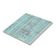 Decorative tile with aqua blue wood image. Rustic, distressed panels of wood, with peeling paint, cover tiles in two sizes.