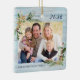 This beach inspired Christmas ornament with a rustic wood background makes a great annual holiday keepsake, easily customized for a unique gift with the photo and text templates. Holiday watercolor sprigs of holly, pine, and starfish in two corners frame the photos on both sides.