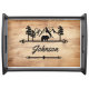Easily personalize this rustic serving tray that is decorated with a mountain and bear monogram.
