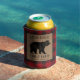 Can cooler with your personalized family name and cabin, lodge or other desired text and it's location or established date. This unique custom design features hand drawn style artwork of a bear on faux burlap with red buffalo plaid print. To see more designs like this please visit my store "Rustic_Charm" here at Zazzle. Thanks.