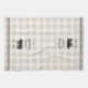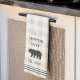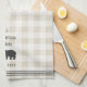 Customize your kitchen with this cute personalized towel featuring your family name or house name and year established in rich charcoal grey lettering accented with a bear illustration on a tonal plaid background.
