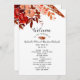 Rustic Beauty Floral Framed Watercolor Bohemian Autumn or Fall Design with Boho Hand Painted Flowers, feathers, and Plenty of colorful orange, rust, red, Burgundy, Marsala, and peach leaves and foliage. With Hand Drawn Line elements, Swirly Hand Lettered Fonts, and Pretty Top Border Wedding Ceremony Program!