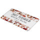 Rustic Beauty Floral Framed Watercolor Bohemian Autumn or Fall Design with Boho Hand Painted Flowers, feathers, and Plenty of colorful orange, rust, red, Burgundy, Marsala, and peach leaves and foliage. With Hand Drawn Line elements, Swirly Hand Lettered Fonts and Rose Gold Geometric Rectangle Frame Wedding Just married license plate cover!