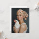 A young woman with striking blue eyes and delicate features gazes softly while holding a white chicken. She wears a floral headscarf tied around her head, evoking a rustic and vintage aesthetic. The dark background contrasts with her fair complexion and the white feathers of the chicken, creating a timeless, classical portrait with a painterly effect.