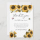Rustic bee theme gender reveal party thank you template card featuring watercolor illustration of yellow sunflowers and baby's breath with bumblebees.