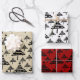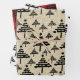 Rustic Beige Black Red Christmas Tree Pattern Wrapping Paper Sheets
